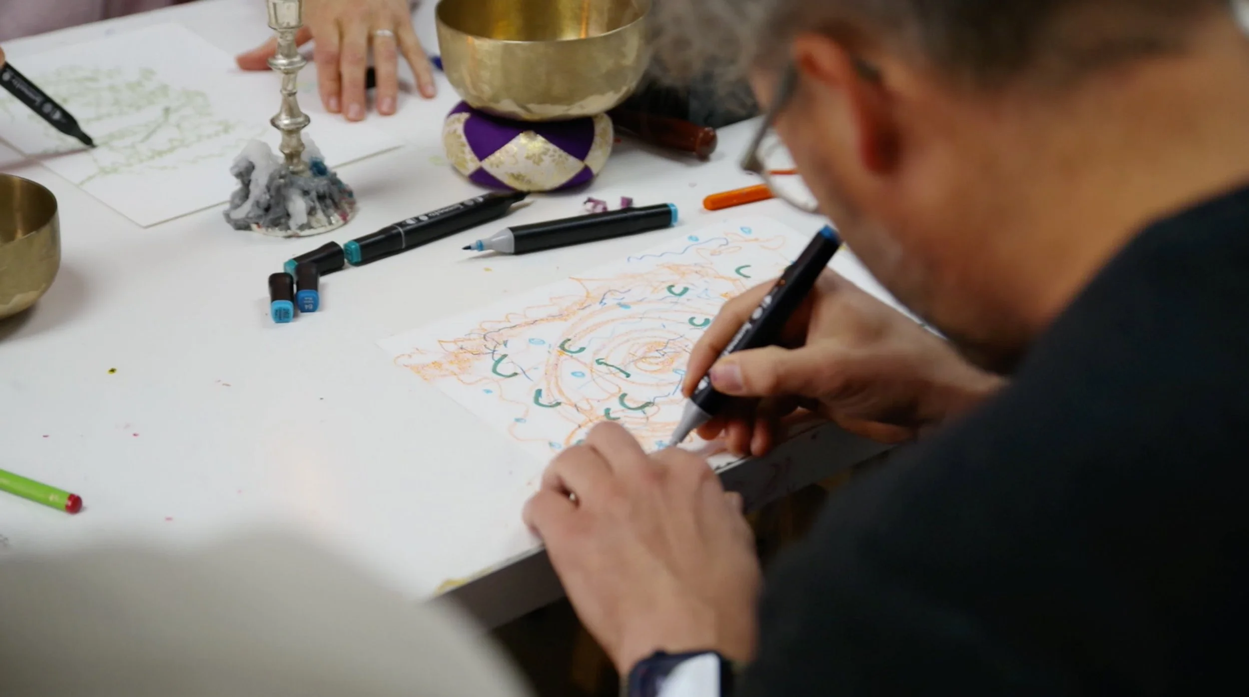 People come here to work with paint, paper, space, and time, without instruction to follow or results to reach. What matters is not what is made, but the quality of presence brought into the act of making.